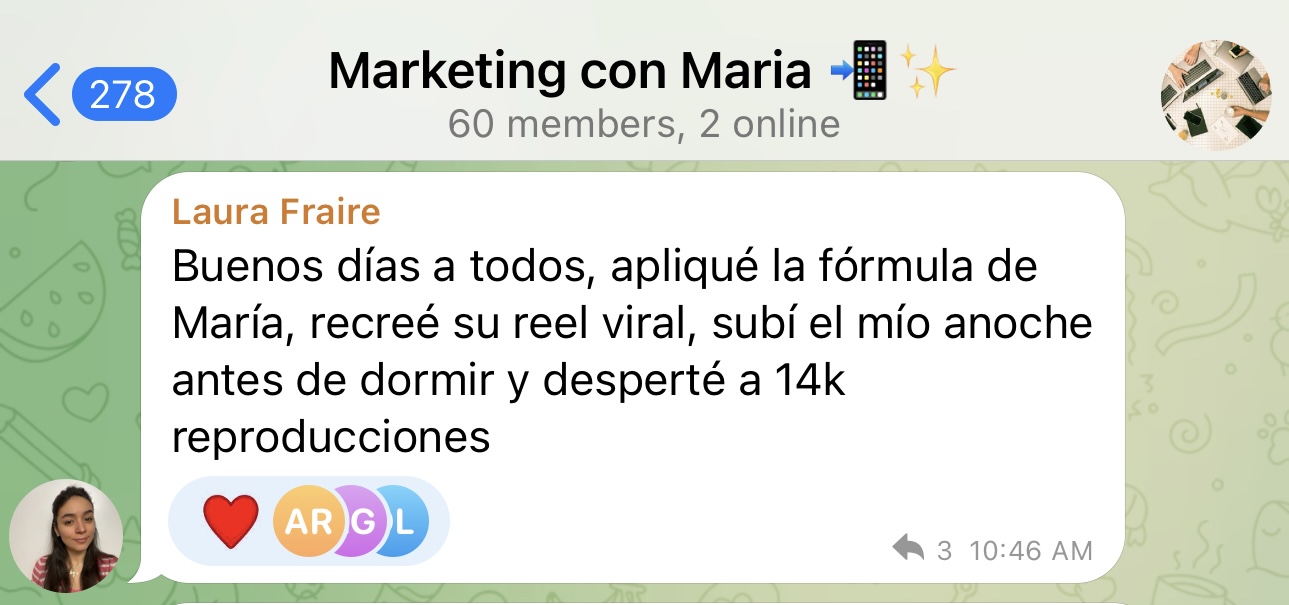 También tendrás acceso a mi grupo privado de Telegram donde tendrás mi asesoramiento y apoyo personal :)