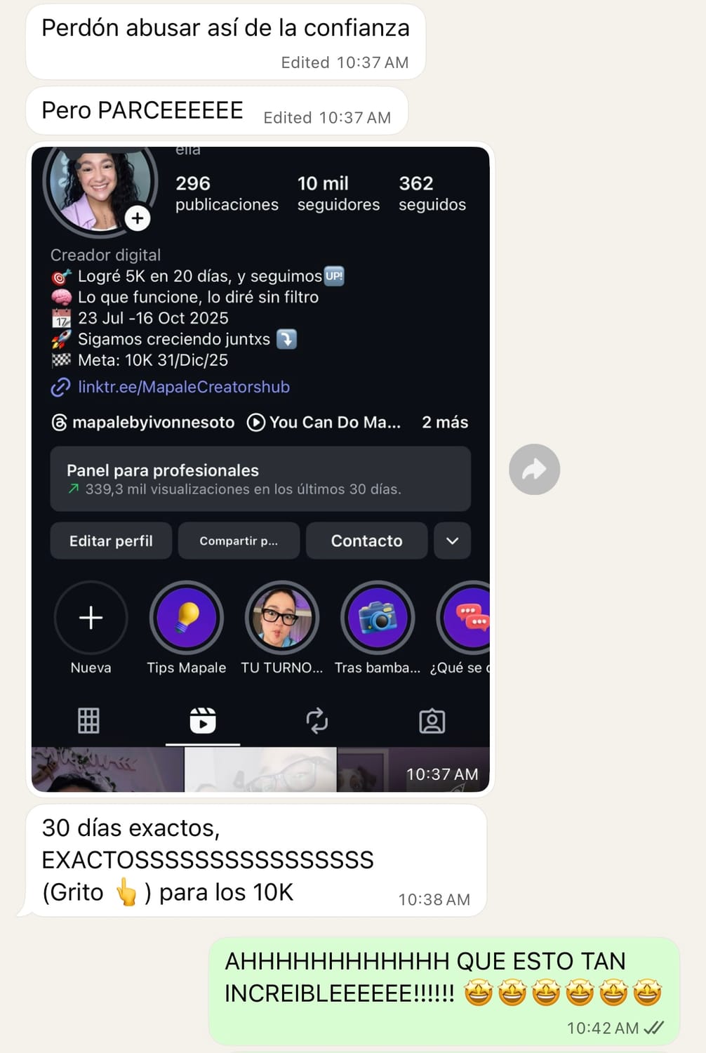 Perfecto! Yo también empecé desde 0 la segunda vez. Te mostraré cómo llegué a 10K en 23 días sin usar mi autoridad previa ni mostrando mis resultados. El sistema está diseñado específicamente para personas que empiezan desde cero.