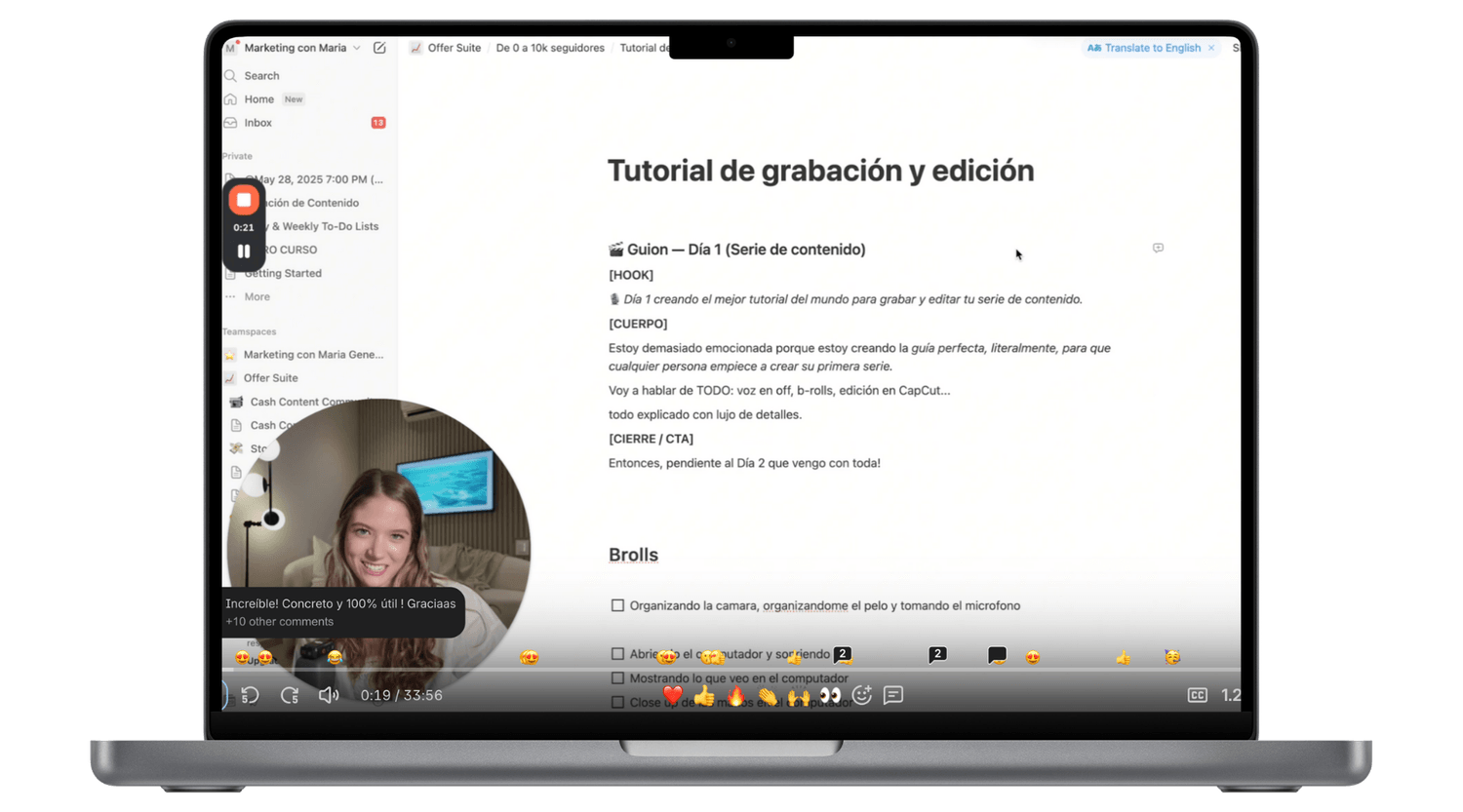 Edición 3x3™: Mi flujo de trabajo simple de edición que te permite crear contenido por lotes rápidamente sin herramientas complejas. Graba 3 videos en una sesión, edítalos en 3 pasos simples y tendrás contenido para toda la semana. Esto convierte 3 horas en una semana completa de contenido.