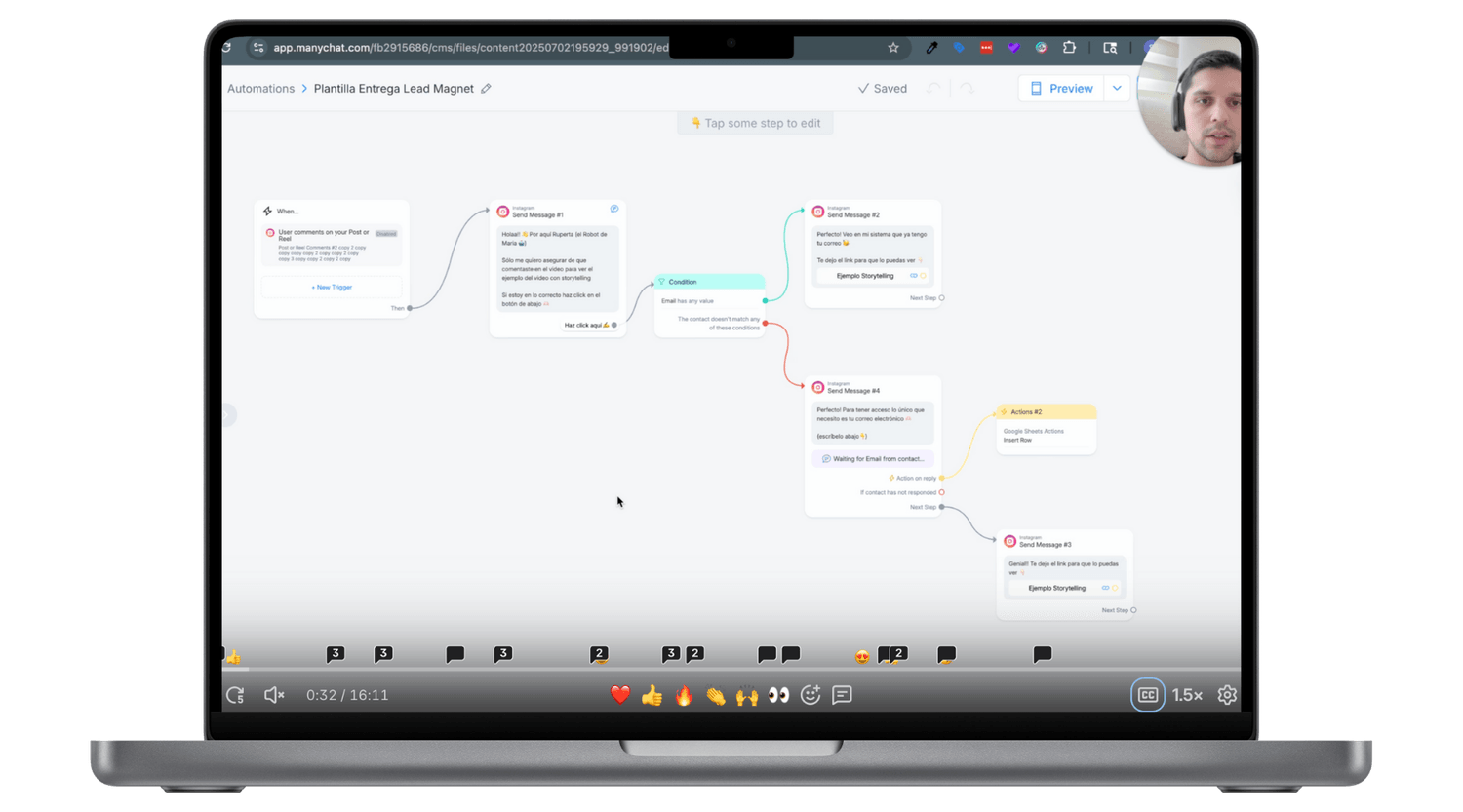 Automatización con Manychat: Copia y pega mi automatización en 5 minutos para entregar tu lead magnet 24/7 sin hacer nada más.