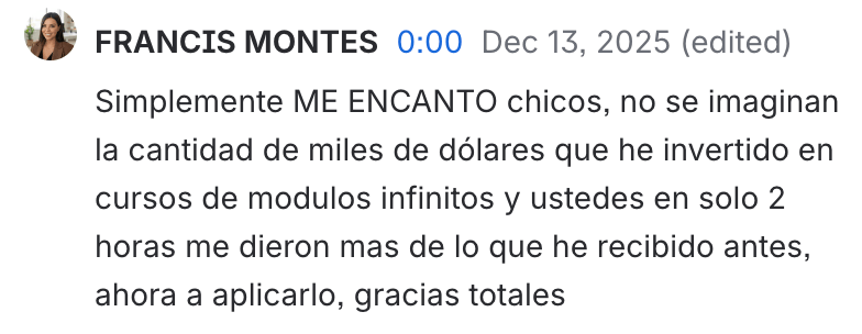 No. Ya hicimos el workshop en vivo. Pero ahora tienes acceso a la grabación completa + todas las plantillas y recursos + el Q&A grabado donde respondo las preguntas más comunes de estudiantes.